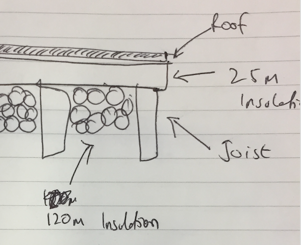 Although this image is of a pitched roof both flat roofs and pitched roofs have warm and cold spaces.